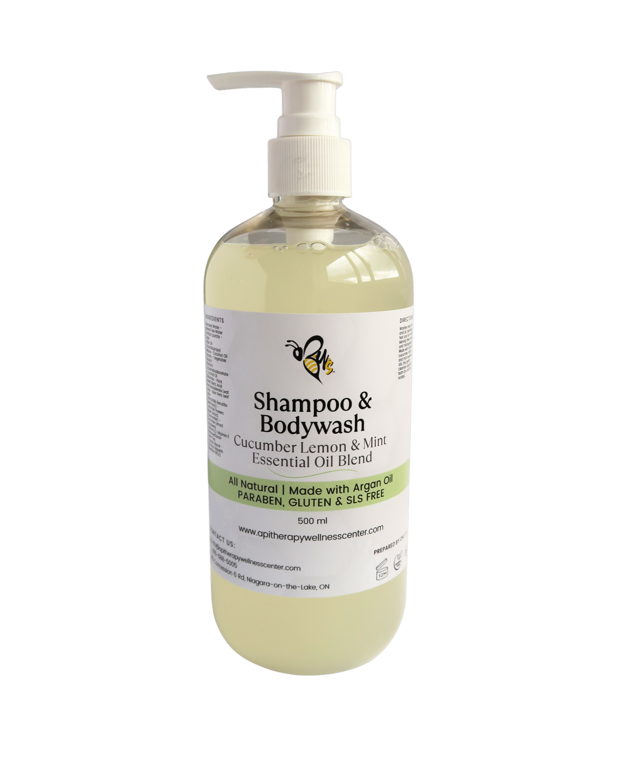 Ingredients: Deionized Water (Mineral Free Water), Sorbitan Laurate (Sugar Derived), Argan Oil, Cocamidopropyl Betaine, Coconut Oil, Glycerin (Vegetable Derived), Disodium Cocoamphodiacetate, Coconut Oil Distearate (Plant Based), Stearic Acid, Aloe Barbadensis Leaf Juice (Aloe Vera Leaf Juice), Chamomilla Recutita (Matricaria) Flower Extract (Chamomile Extract), Tocopherol (Vitamin E), Phenoxyethanol, Green Tea Extract, Caprylyl Glycol (Coconut Derived), Glycerin, and Essential Oils (Cucumber, Lemon, Mint).
